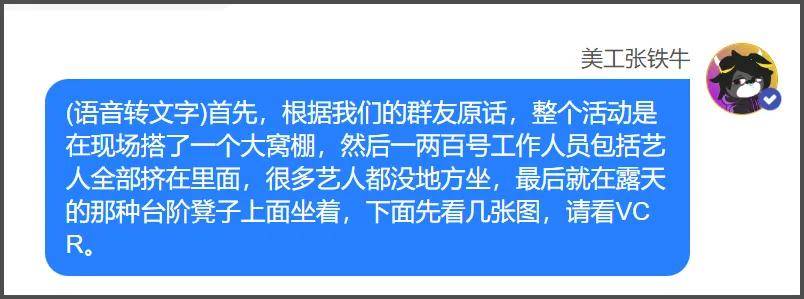 据业内描述虽然当天活动的排场很大,请了不少大咖,但实际上后台场地很小,休息室也只有几个提供给品牌方工作人员和大咖,有些咖位小的明星艺人只能在外面站着,想换衣服也只能去卫生间。现场很多人都坐在台阶上休息。