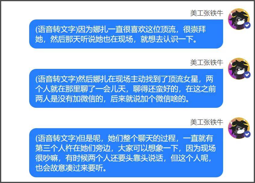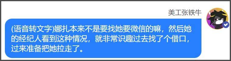 娜扎本来想加顶流好友,但是经纪人感觉气氛不对就找了个借口准备把娜扎拉走,顶流还说没关系,等过一会儿她主动去找娜扎交换联系方式,后来两人也加上好友了。