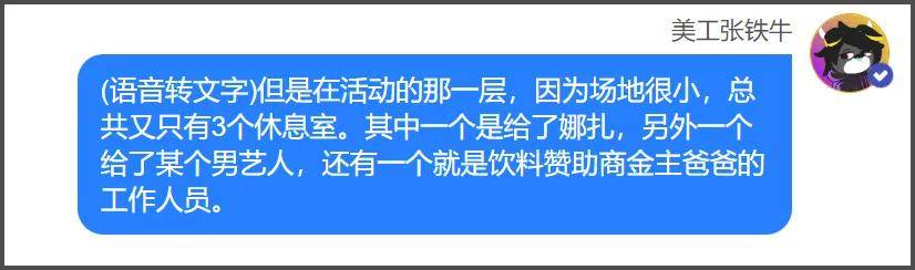 但这位男星工作完回来也需要休息,得知事情来龙去脉之后,男星大方把休息室借给了娜扎,转头去敲那位抢别人休息室的二字女星的门。但对方主打一个谁来都没用,就是强占不走,最终隔壁品牌方的工作人员让出了自己的休息室给男星,这事儿才算完,最后受累的还是打工人。